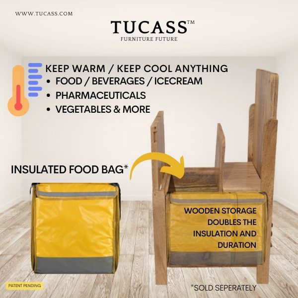 TUCASS is made of pure solid wood provides excellent insulation to keep your contents Cool or Warm for log duration. You can double the insulation by adding an extra insulated delivery bag* (sold sepreatly) which will nearly double your duration of the temperature of the contents.